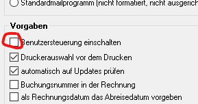 Einstellungen – Stammdaten – allgemeine Vorgaben